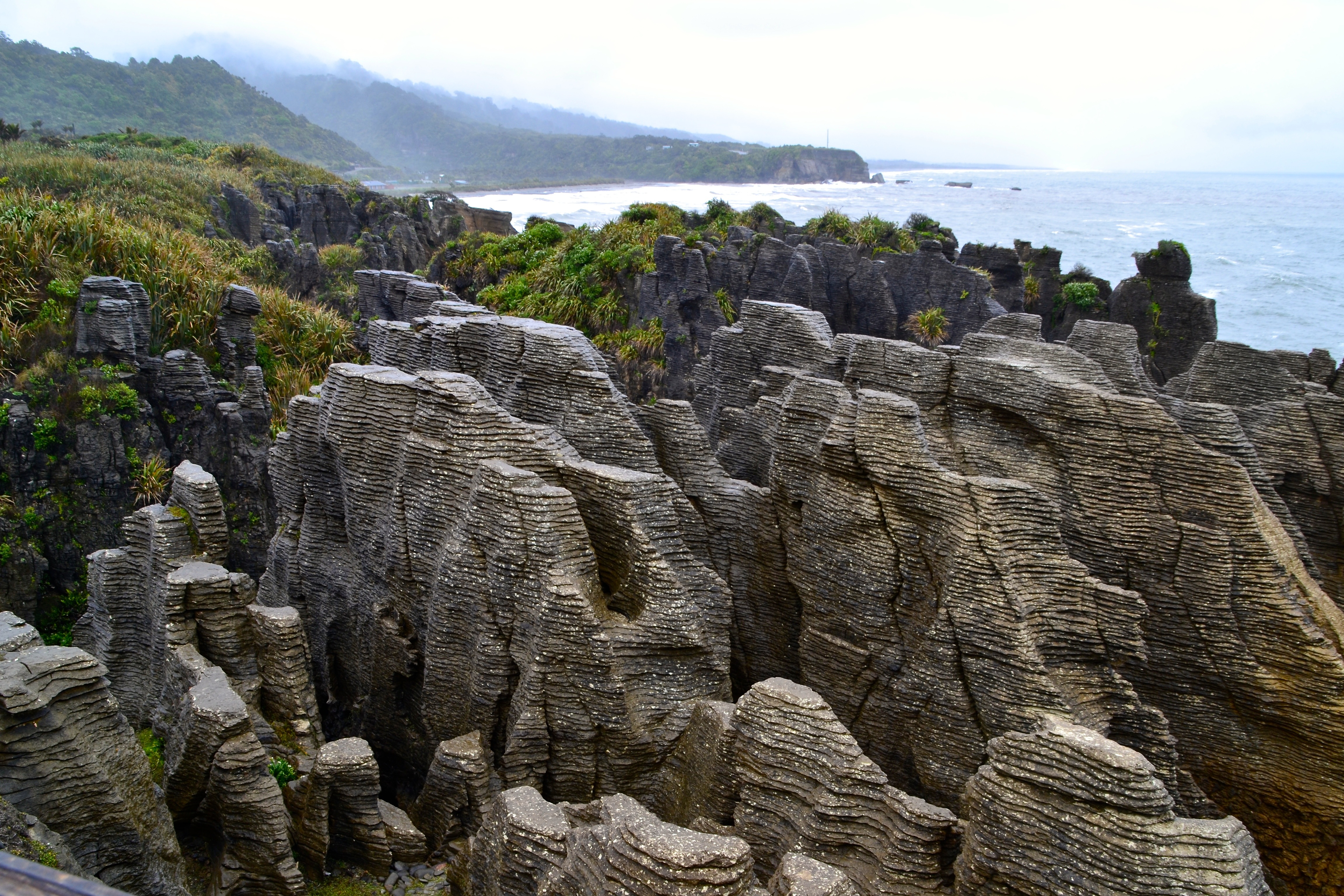 After enjoying a relaxing day and a fun trip to a quaint wharf in Mapua for a delicious dinner at the Apple Shed Cafe, we set out to explore the west coast of the South Island the following day. The main stop we made on the way down the coast was to the Pancake Rocks in Paparoa National Park or Punakaiki, as the Maori refer to them.