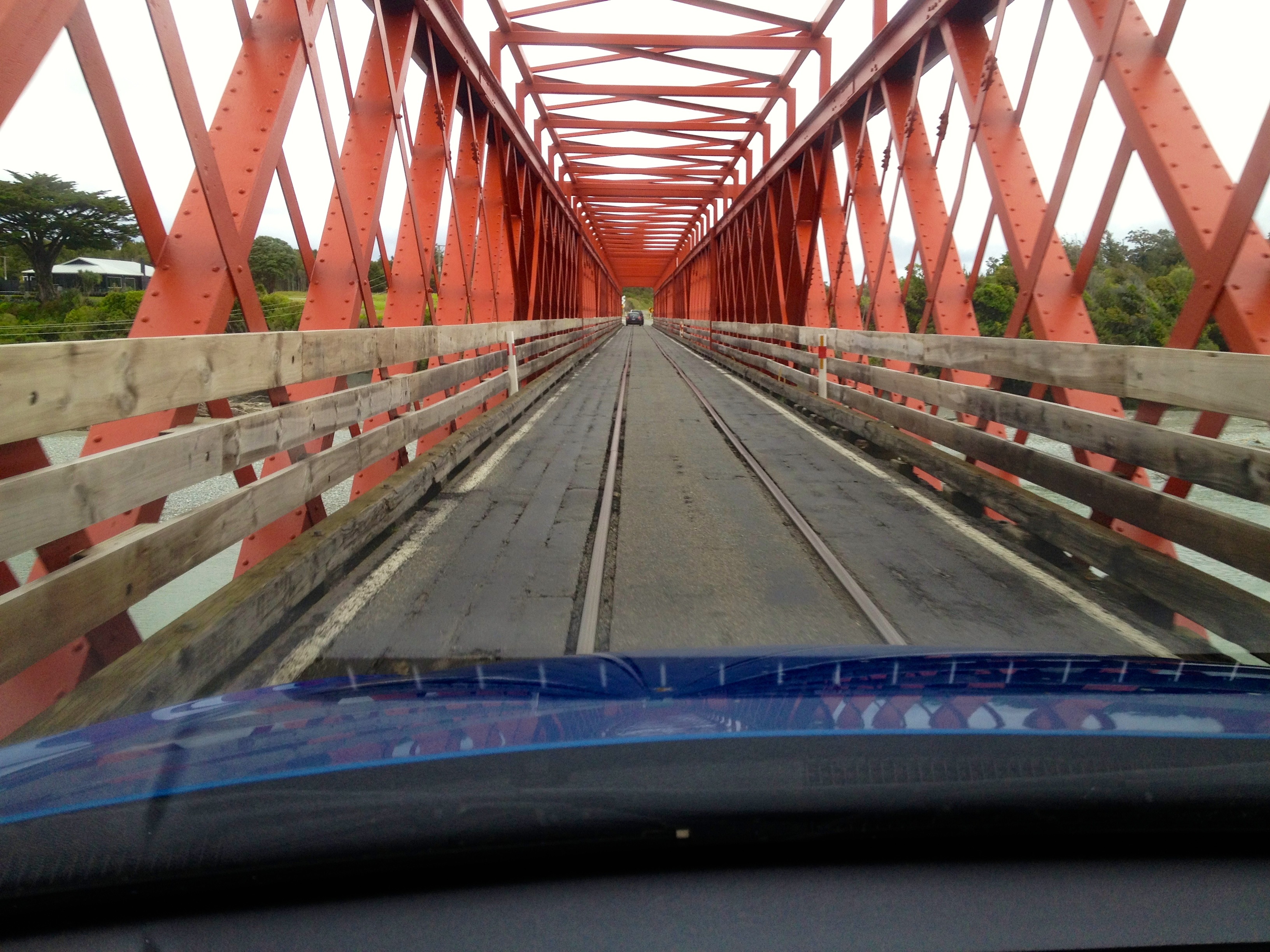 Afterward, we drove through Greymouth and down the coast. On our way, we came across a one way bridge…for trains and cars!